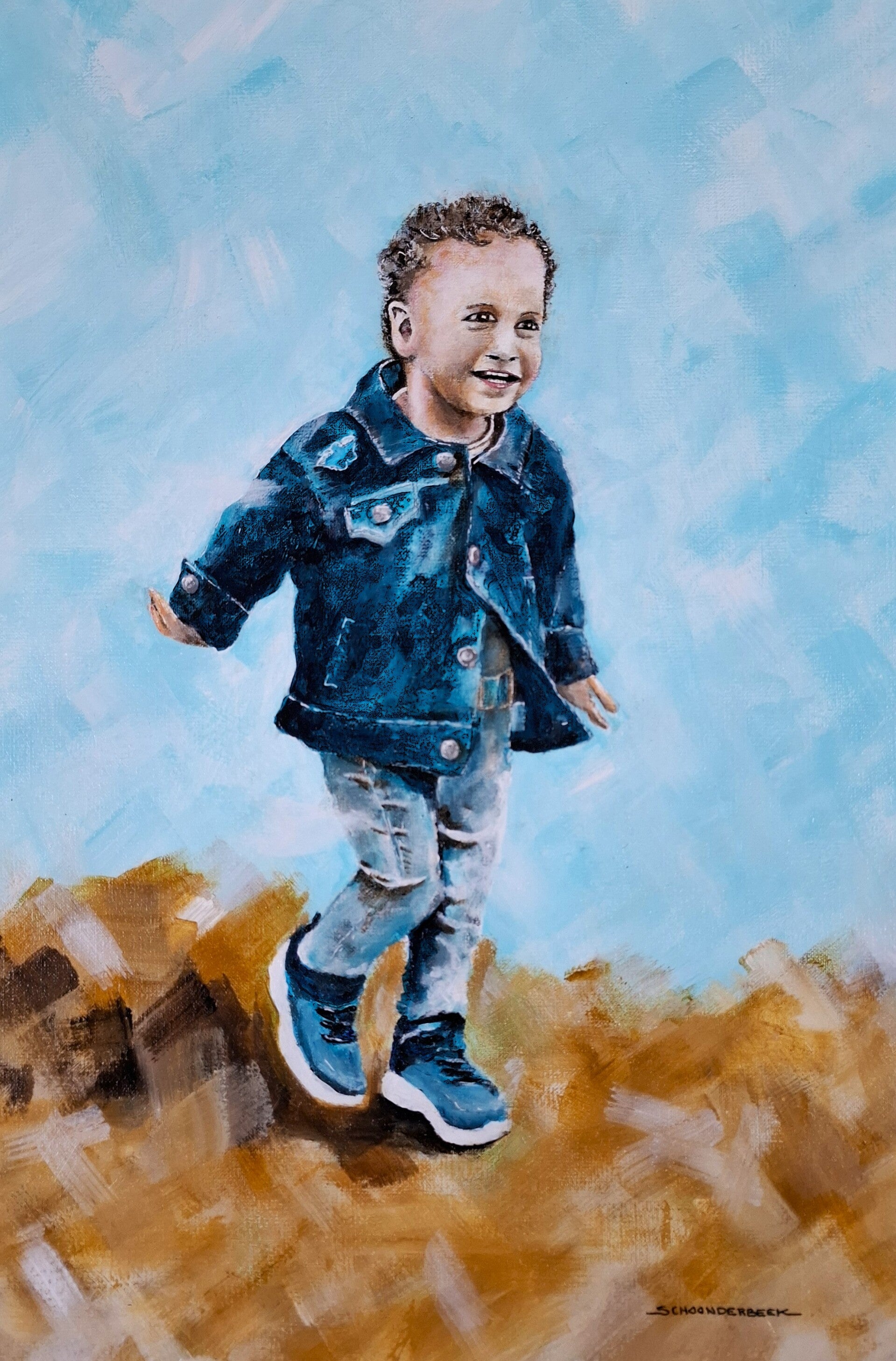 In weer en wind aan het werk en op zoek naar licht, lucht en ruimte, dat ik nat-in-nat op het doek weergeef.